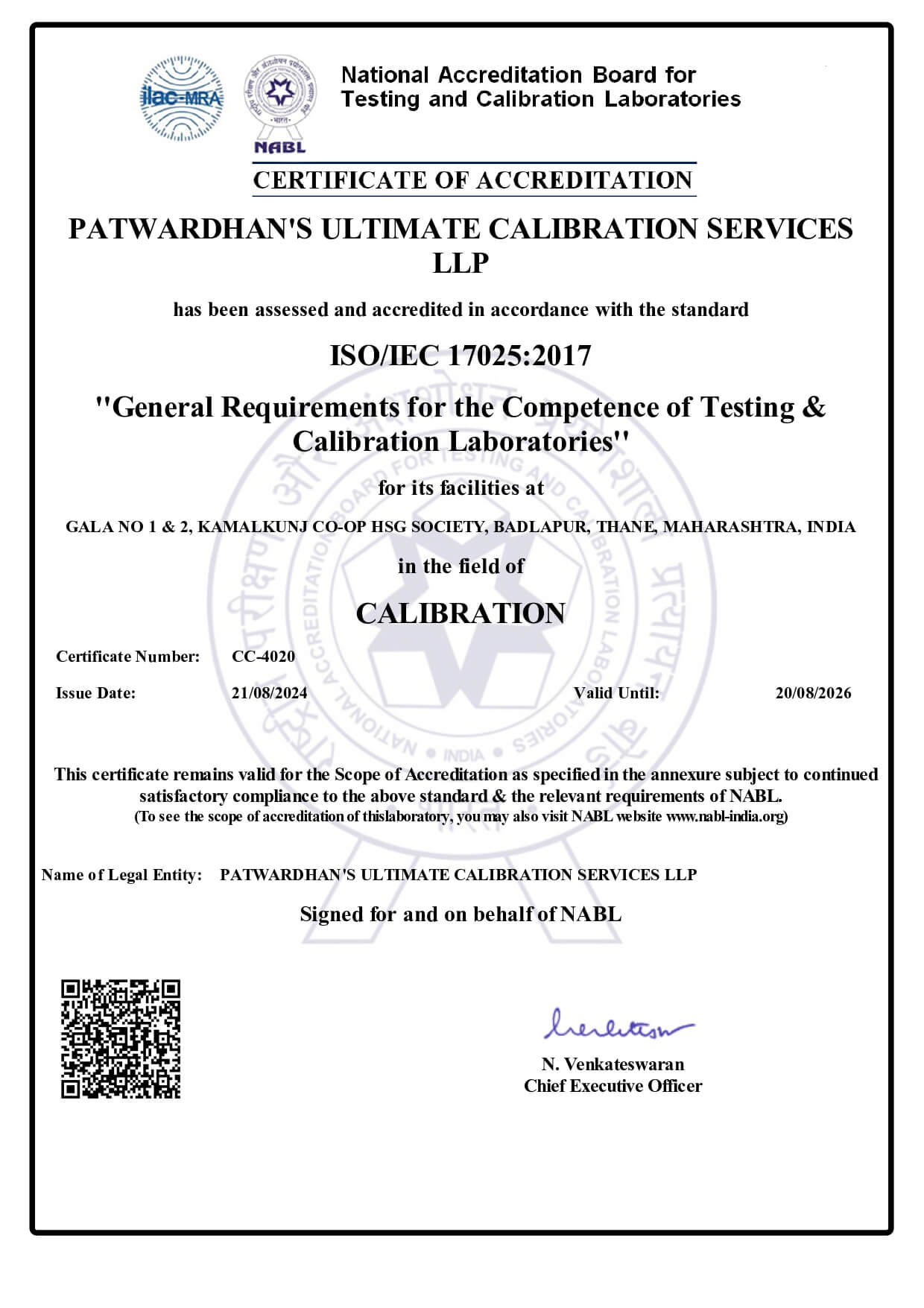 “Patwardhan’s Ultimate Calibration Services LLP“ referred as The PUCS – is a Partnership firm, established in year 2019. The partners of the company – Mr. V.W.Patwardhan and Mrs. Archana V. Patwardhan are having a good practical experience about the calibration field for at least 27 years and 15 years respectively.